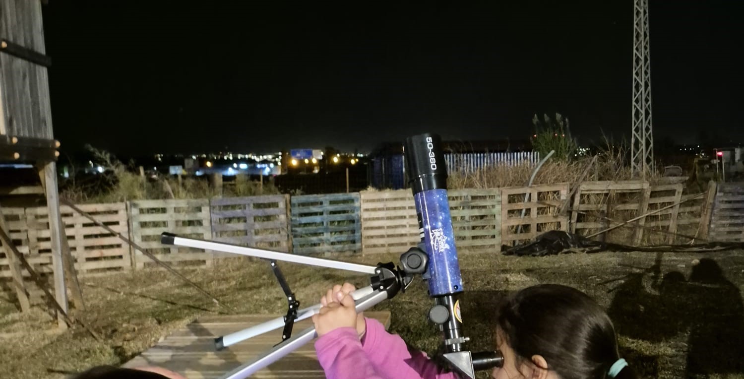 Com grande entusiasmo e curiosidade, as crianças exploraram o céu noturno com a ajuda de um telescópio, observando as estrelas, a Lua e identificando constelações visíveis. Esta atividade despertou um forte interesse pelo Universo, incentivando-os a fazer perguntas e a procurar compreender melhor o que existe para além do nosso planeta.